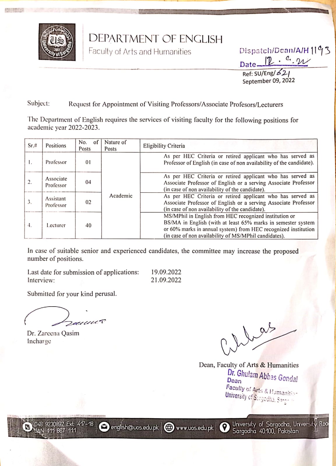 | Visiting Faculty Required (Communication and Media Studies) | 12-09-2022