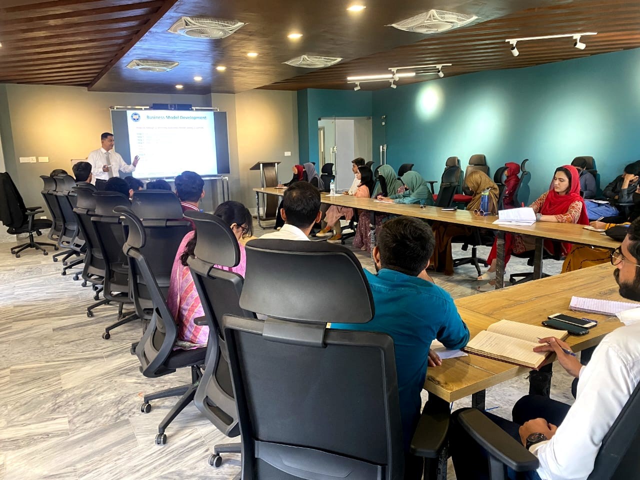 Prof. Dr. Ahmad Raza Bilal, a renowned expert in the field of business and entrepreneurship, conducted a highly informative and engaging session on Business Model Development. The session was held at the Waheed Wain Incubation Center and was attended by a diverse group of business professionals, entrepreneurs, and students.