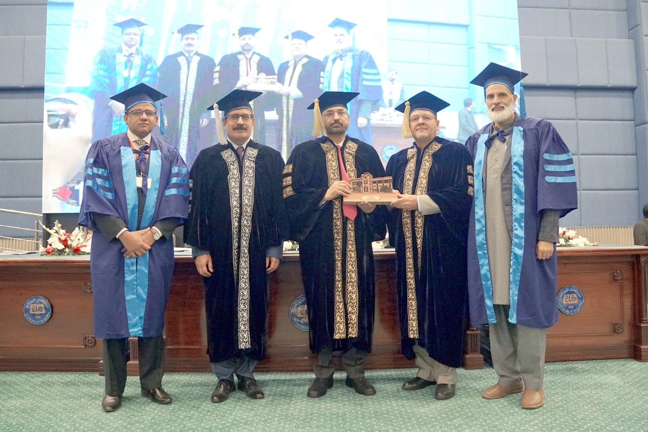 He addressed the second day of the 10th Convocation at the University of Sargodha (UoS). The ceremony was initiated in a ritualistic manner, with the entrance of the academic procession presided over by the Chairman Punjab Higher Education Commission Prof. Dr. Shahid Munir along with Vice Chancellor Prof. Dr. Qaisar Abbas, Pro Vice-Chancellor Professor Dr. Mian Ghulam Yasin, Registrar Waqar Ahmed, and Controller Examinations Dr. Muhammad Bashir.