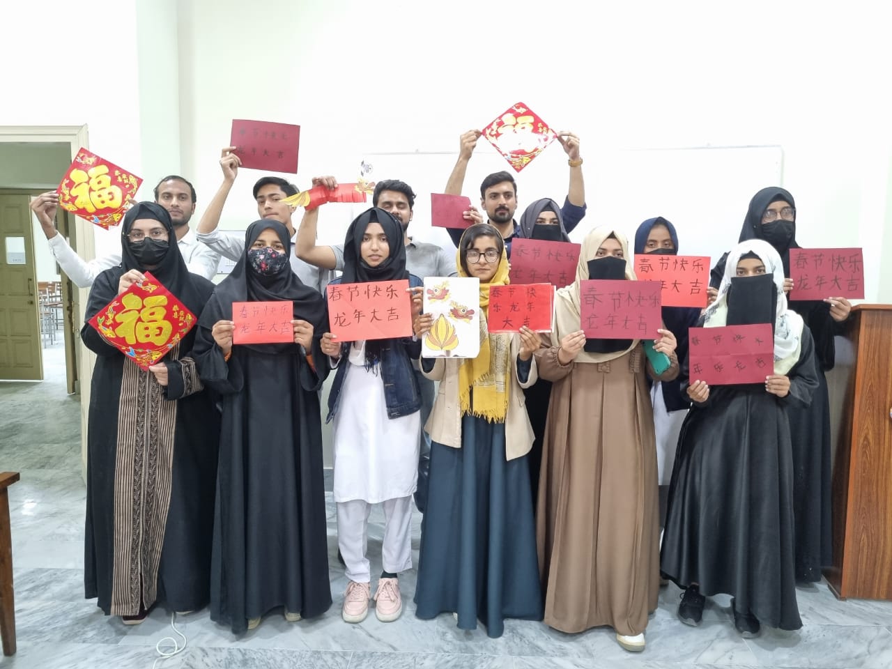 Several activities were included to celebrate the festival such as a brief talk on the history of the Chinese Spring Festival, learning and writing the Chinese couplets, learning some blessing expressions and etiquettes for the Chinese Spring Festival, and watching a short video. A meet up of Chinese university alumni working at University of Sargodha was also arranged on this special day.