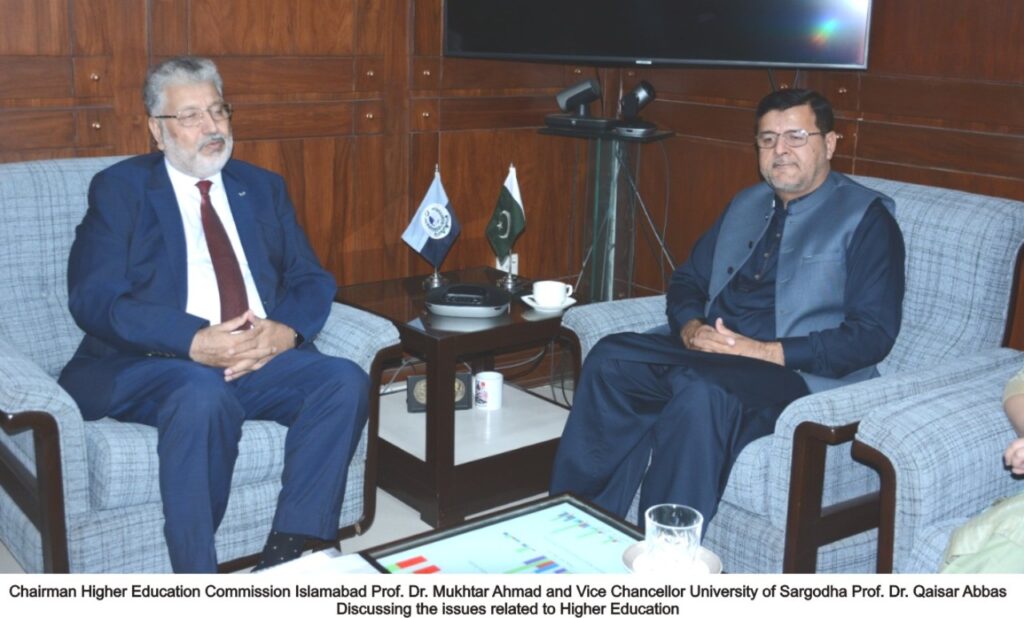 According to details, UoS VC Dr Qaisar Abbas called on the HEC chairman to discuss the issues and challenges related to higher education.