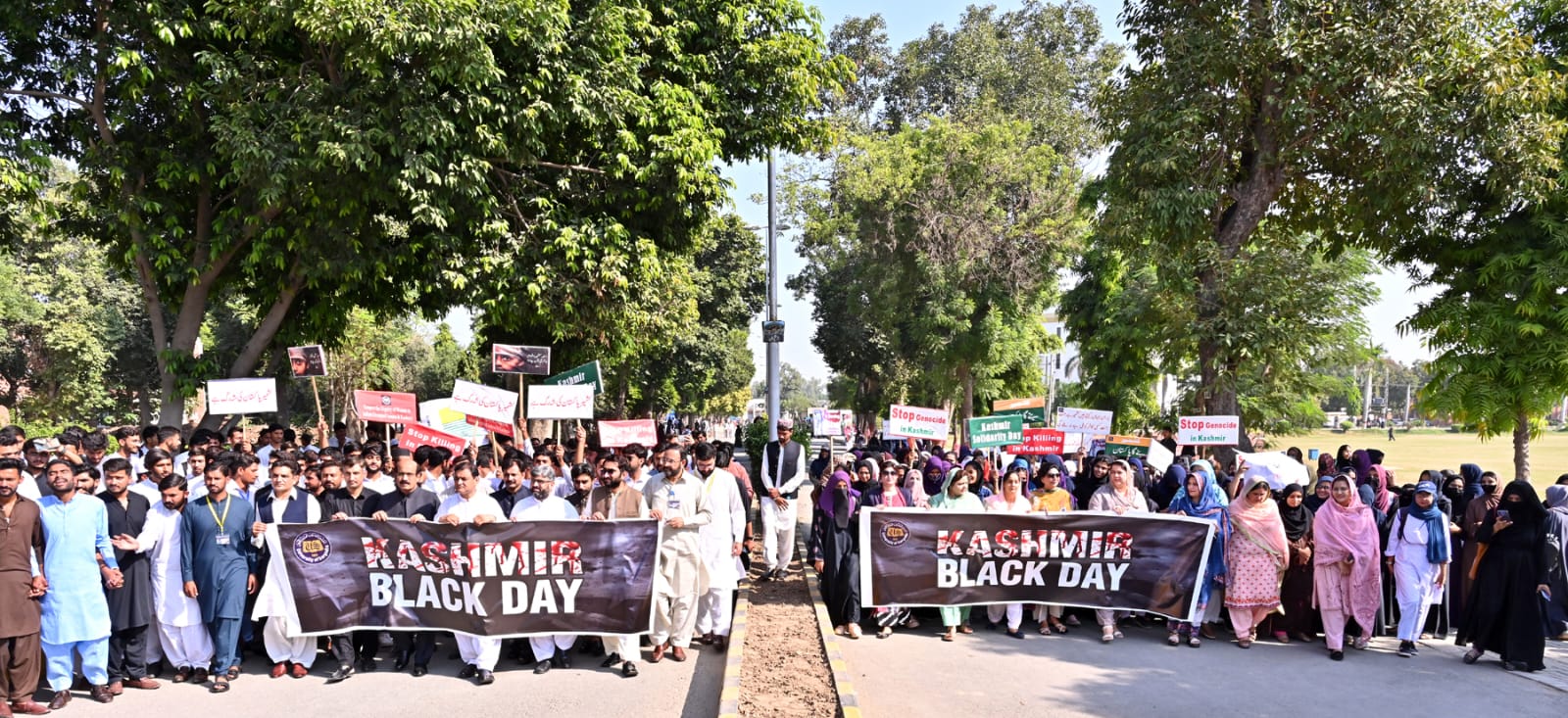 Sargodha, October 25, 2024. To support the oppressed people of Kashmir and to condemn the cruelties of Indian Government and occupied forces in Kashmir, the University of Sargodha organized the Kashmir Solidarity Walk, which started from Library Chowk and concluded at Fountain Chowk.